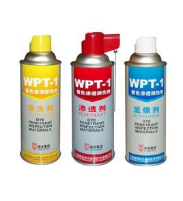 WPT-1著色滲透探傷劑溶劑型,可水洗,采用中日合作配方工藝,高靈敏度,低氟、氯、硫含量,無刺激味。