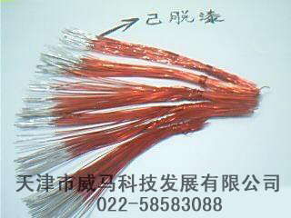 漆包線浸入脫漆槽中(按規(guī)定尺寸)---空氣中放置(20秒—60秒)----用布擦拭脫掉的漆皮