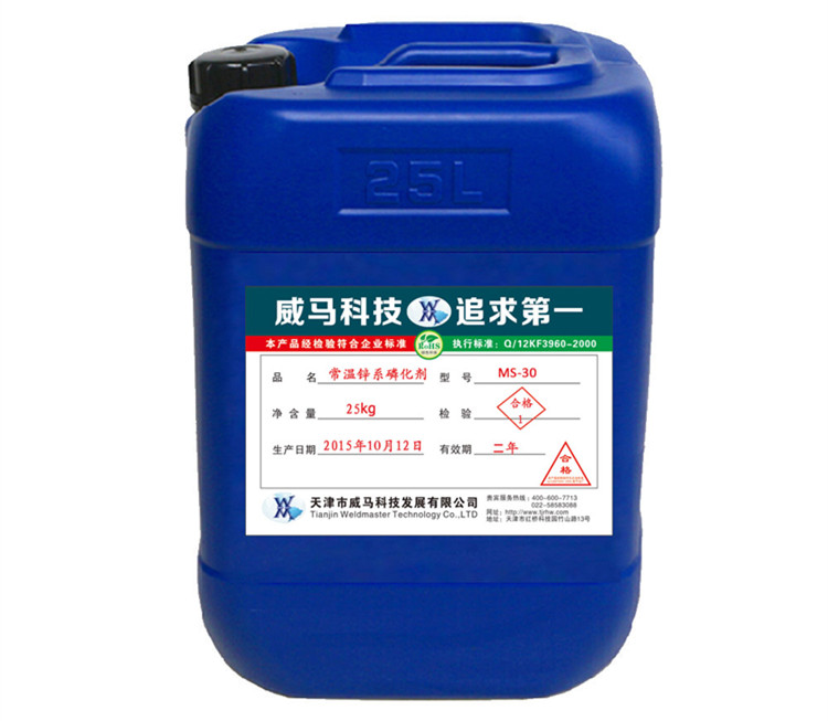 常溫鋅系磷化劑MS-30是一種低溫、低渣、快速鋅系磷化液,適合采用噴淋或浸漬方法對(duì)鋼鐵材料進(jìn)行涂裝前磷化處理。