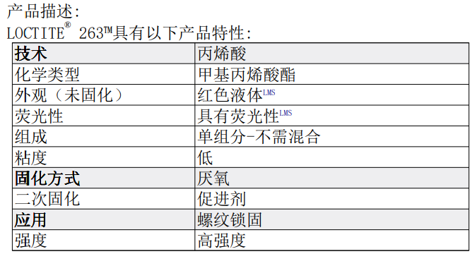 樂(lè)泰膠螺紋鎖固劑263,LOCTITE263螺紋鎖固劑