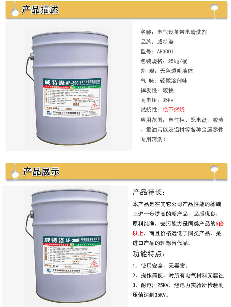 AF-300II是清洗電機、電器柜、配電盤,膠漬、重油污膠漬、積碳以及鋁材等各種金屬零件專用清洗產品,本產品是在其它公司產品性能的基礎上進一步提高的新產品,品質優良,原料純凈,去污能力是同類產品的5倍以上,而且價格遠低于同類產品,是進口產品的理想替代品。